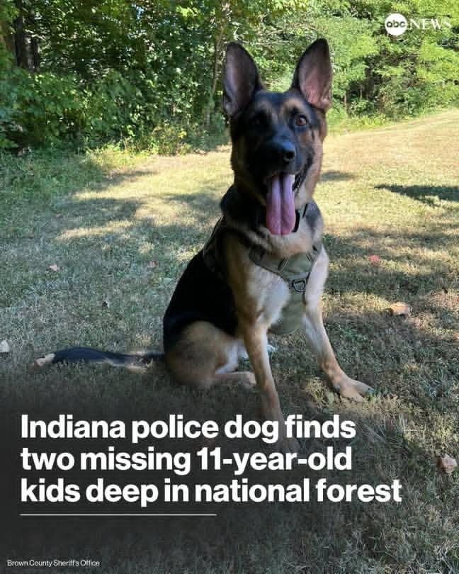 A K-9 unit with the Brown County Sheriff’s Office in Indiana located two missing 11-year-old kids who became separated from their mother and were lost in the woods, police said.