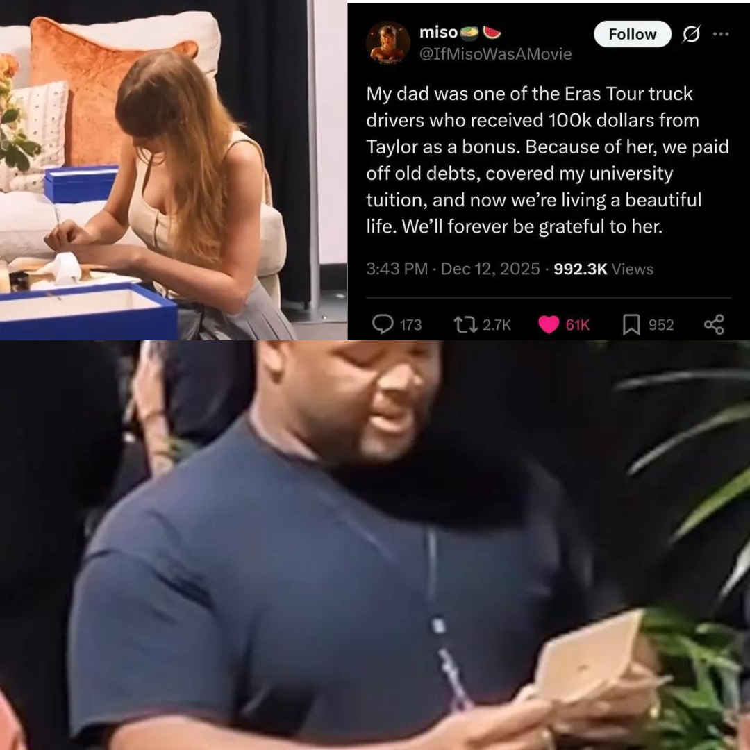 Earlier in the year, TMZ reported that Taylor had gifted her tour truck drivers a $100,000 bonus each.